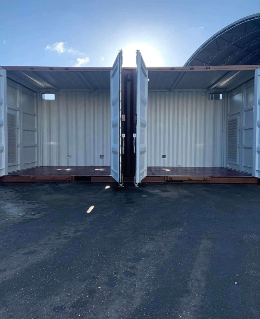 Designed and built for secure storage and mobility, the 20ft open side shipping container gives you the freedom to access interior cargo from a side door point of entry. The 20ft open side shipping container is weatherproof, mobile, and fits in a standard parking space.