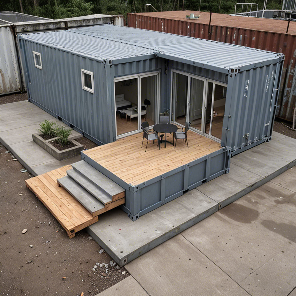 • One 20-ft container: Complements the design as a secondary space, perfect for additional functionality such as a kitchen or guest room.