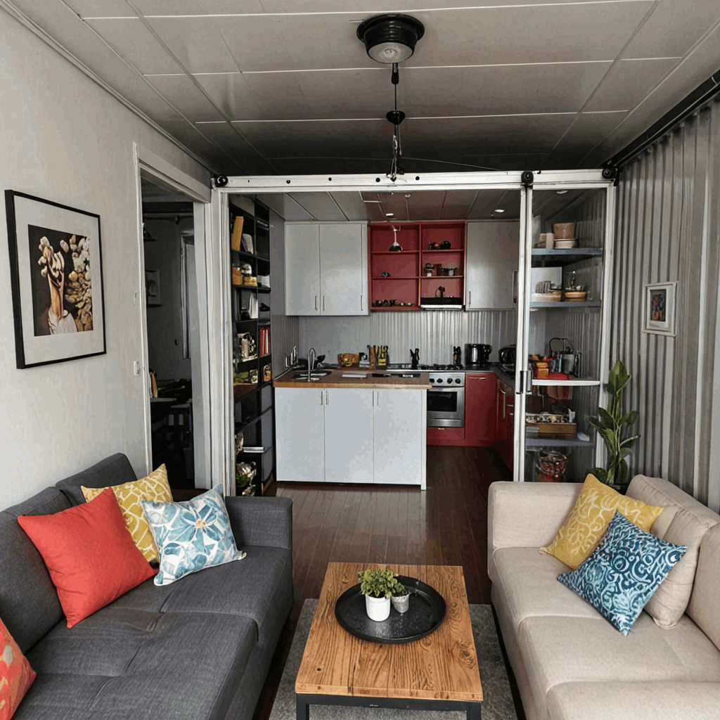 • One 40-ft container: Serves as the primary living and bedroom space.