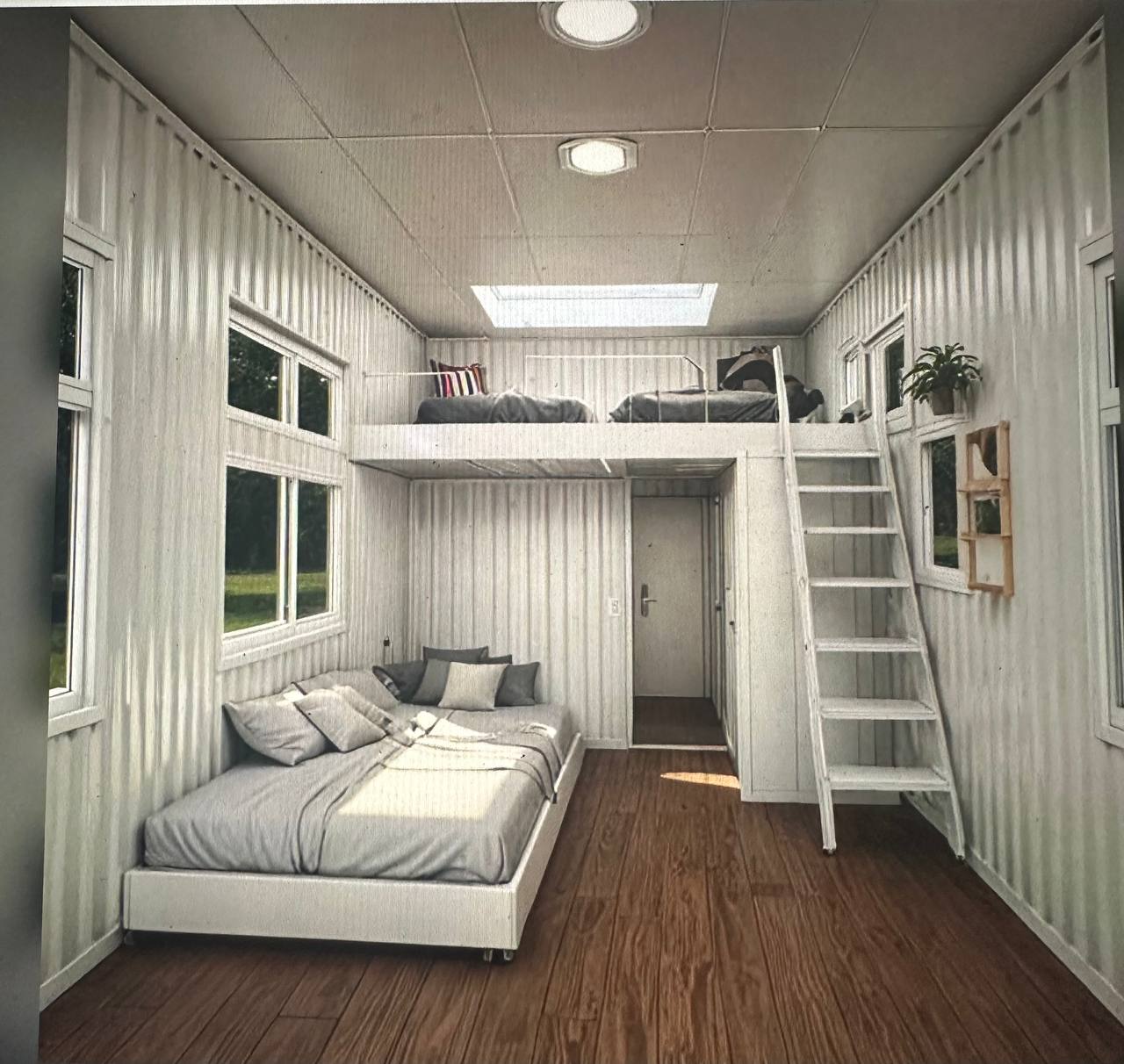 This 2-bedroom shipping container house with a balcony is a modern, stylish, and sustainable living solution. Designed to provide comfort and functionality, it features innovative elements such as sliding windows and doors that enhance natural light and seamlessly blend indoor and outdoor living spaces.
